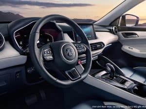 Nội thất MG HS được thiết kế tối giản nhưng sang trọng, sử dụng chất liệu da và nhựa mềm cao cấp. Vô lăng D-Cut thể thao bọc da, màn hình giải trí dạng cảm ứng 10.1 inch đặt ngang tích hợp Apple CarPlay & Android Auto, cùng điều khiển giọng nói thông minh.